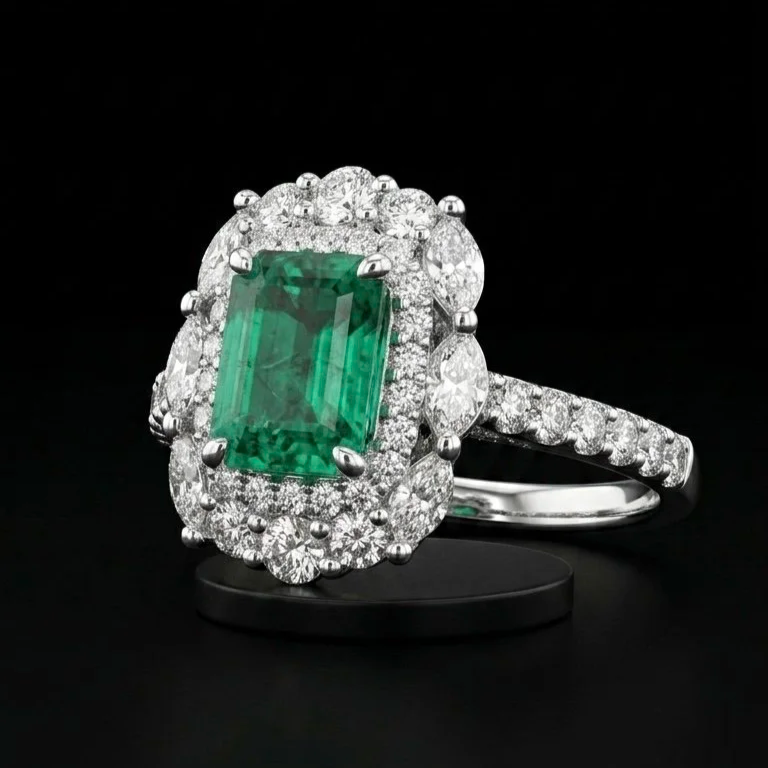 Variété de béryl colorée par le chrome, l'émeraude est l'une des quatre pierres précieuses. Sa valeur repose avant tout sur la couleur : saturation, teinte et uniformité sont les critères déterminants. Ses inclusions naturelles, appelées "jardin", font partie de son identité et sont reconnues comme telles par les gemmologues. Nos pierres peuvent être accompagnées d'un certificat GRS ou SSEF, avec indication systématique du niveau de traitement.